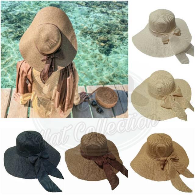 Topi Pantai Lebar Import Topi Fashion Anyaman Polos Pita Besar | Shopee Indonesia