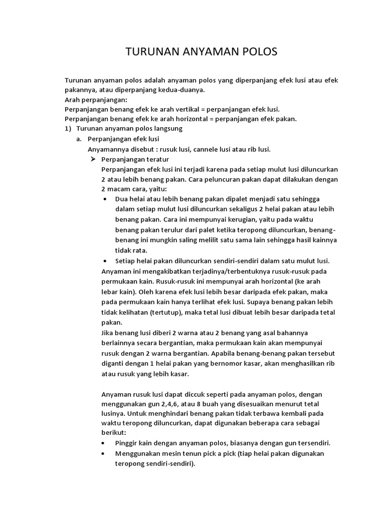 DOC) Turunan Anyaman Keper (Derrivatives of Twill Weave) | Andrian Wijayono - Academia.edu