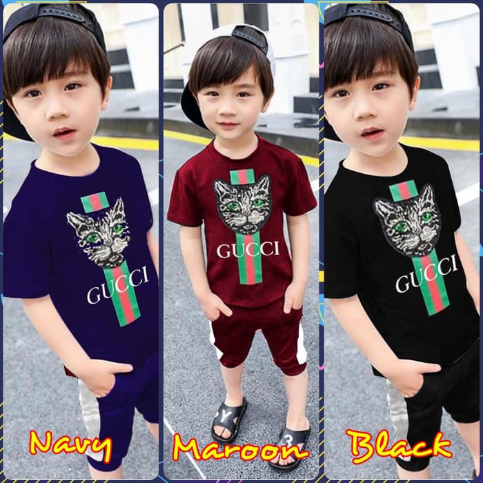 V188 Setelan Baju Kaos Celana Ada Saku Satu Set Anak Kecil Cowok Keren Kece Gucci Catty Usia 2-4th | Shopee Indonesia