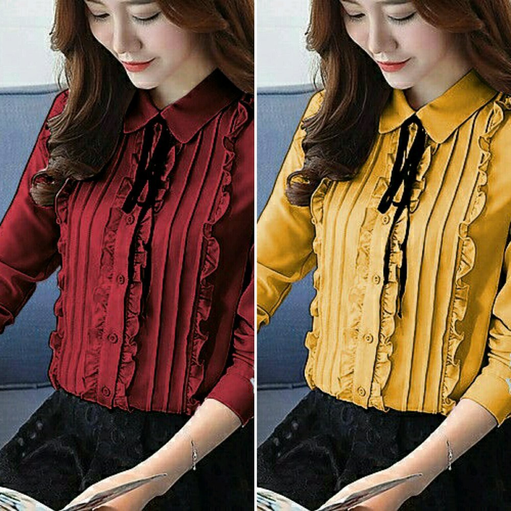 Atasan wanita - Blouse kerja kantor - Pakaian kuliah - blus kekinian - kemeja wanita lengan panjang ft L di Lapak TOKO KLEY | Bukalapak