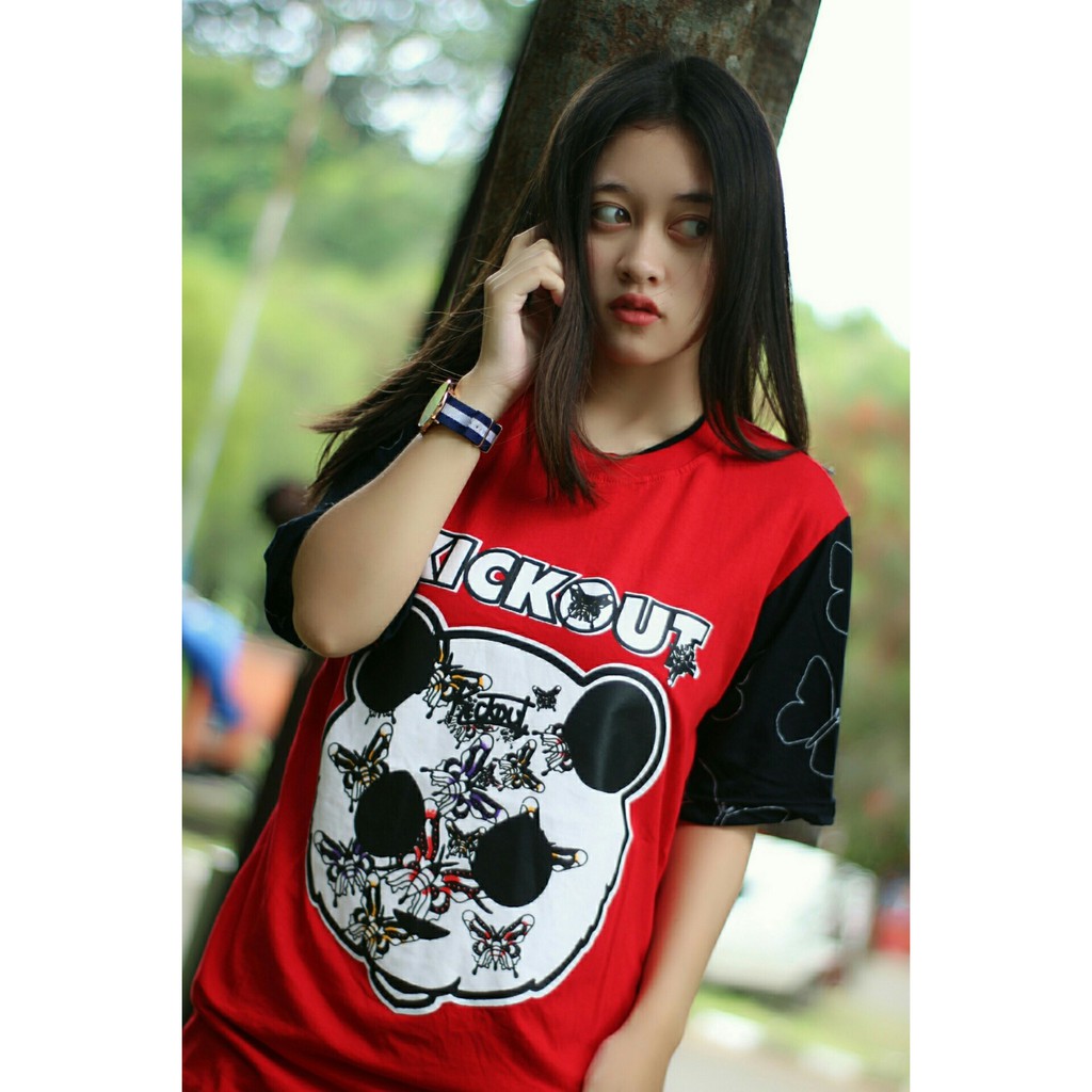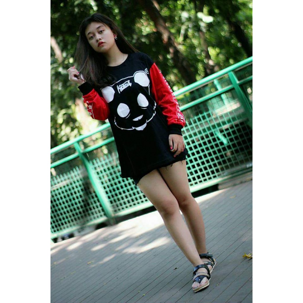 Kaos Distro Kickout Panda Merah Hitam/ Kaos Panjang Wanita Casual | Shopee Indonesia