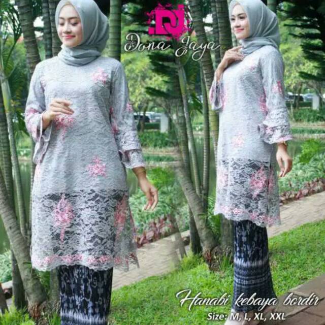setelan baju batik kebaya brukat rinjani kebaya modern baju pesta kebaya wisuda - grey | Lazada Indonesia