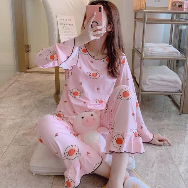 RO COD BAYAR DITEMPAT PIYAMA WANITA STELAN BAJU LENGAN PANJANG DAN CELANA PANJANG SET BAJU TIDUR KARAKTER LUCU | Lazada Indonesia