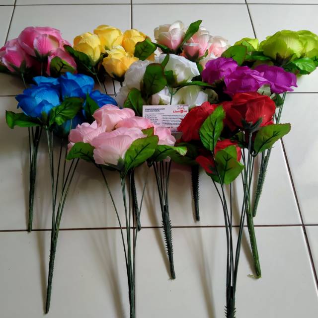 Bunga Mawar Hias Palsu kuntum 6 Merah Putih Biru Hijau Ungu Pink Kuning Salem Peach untuk Dekorasi | Shopee Indonesia