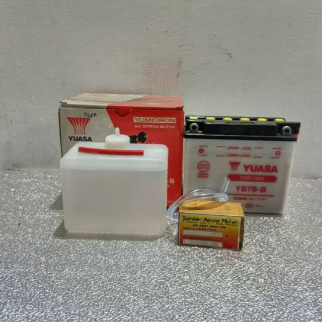 AKI ACCU ACCUE BATERAI BASAH HONDA TIGER YB7B-B MERK YUASA 12V-7Ah | Shopee Indonesia