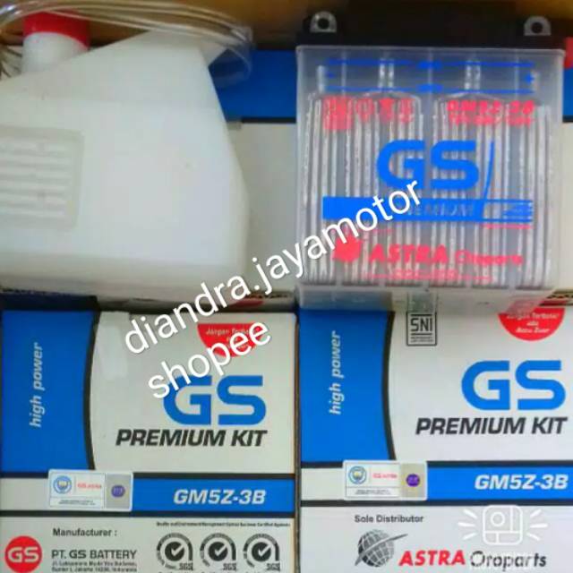 Aki Basah GS ASTRA GM5Z-3B PREMIUM KIT Grand Supra Mio Jupiter Samsh Vega Jupiter Mega pro | Shopee Indonesia
