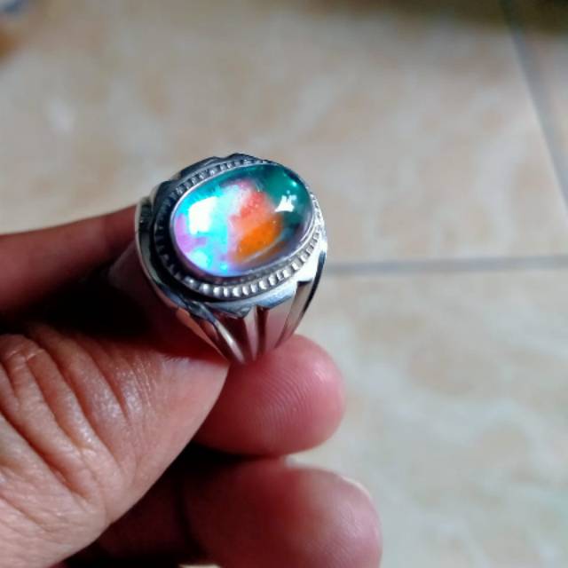 cincin batu akik kalimaya pelangi batu sintetis | Lazada Indonesia