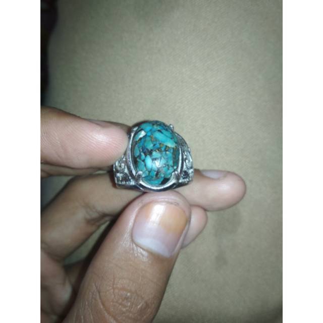 Batu pirus persia asli natural& cincin batu akik pirus persia&cincin pria&cincin cowok&cincin perak | Shopee Indonesia