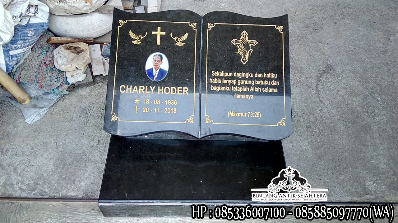 Motif Batu nisan granit hitam, Contoh batu nisan kristen terbaik model buku - Pengrajin batu nisan marmer tulungagung