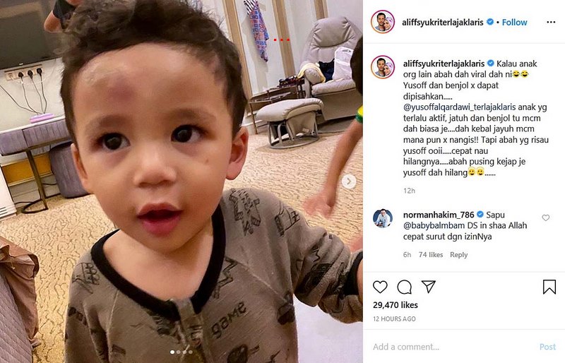 MYARTIS.COM | MYARTIS | MY | ARTIS: ALIFF SYUKRI KONGSI FOTO DAHI YUSOFF BENJOL: “KALAU ANAK ORANG LAIN ABAH DAH VIRAL NI”