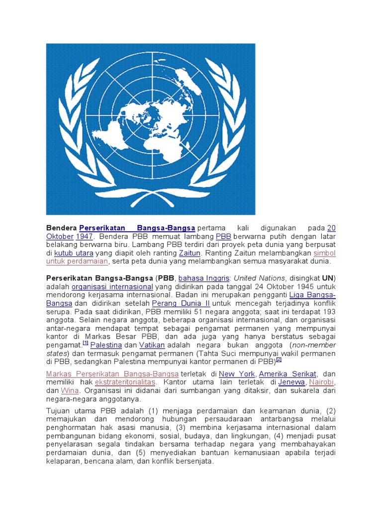 Bendera Perserikatan Bangsa-Bangsa - Wikipedia bahasa Indonesia, ensiklopedia bebas