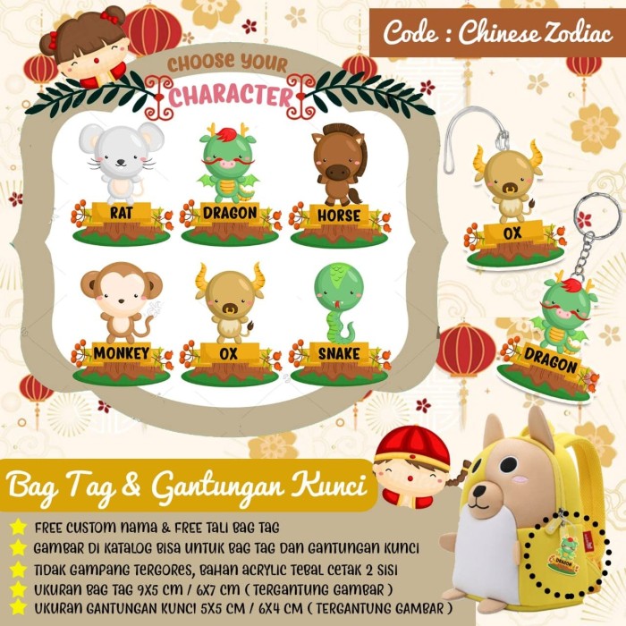 Jual CUSTOM BAG TAG ACRYLIC BINATANG SHIO (bisa request nama) - Kab. Sidoarjo - dumishop SBY | Tokopedia