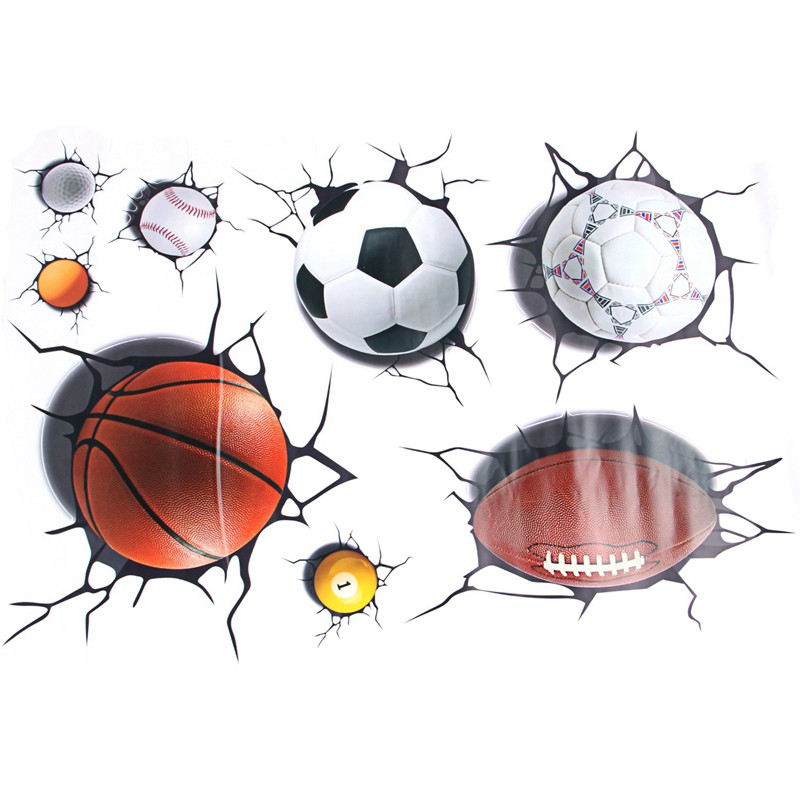 Stiker Dinding dengan Bahan PVC dan Gambar Bola Sepak / Basket 3D | Shopee Indonesia