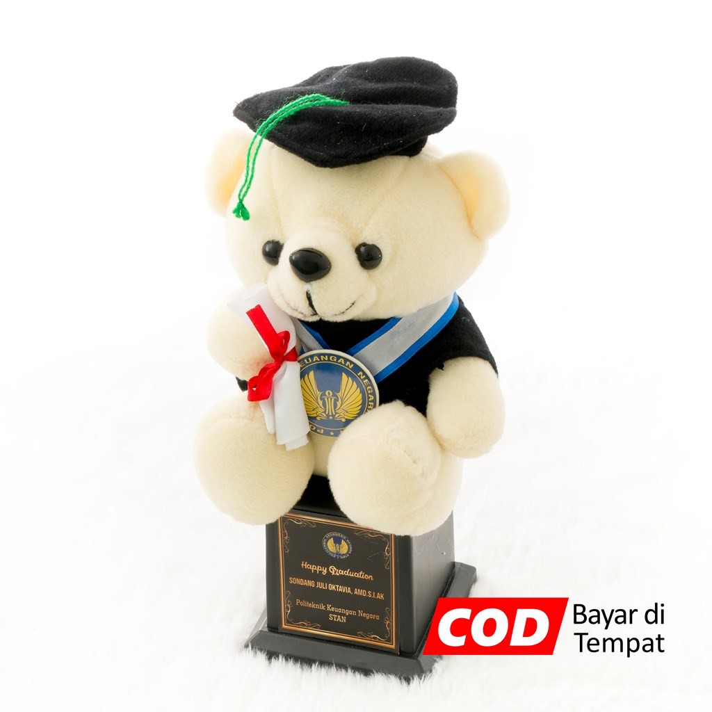 Piala Boneka Wisuda Teddy Bear bisa Request Nama dan Logo Kado Wisudaku | Shopee Indonesia