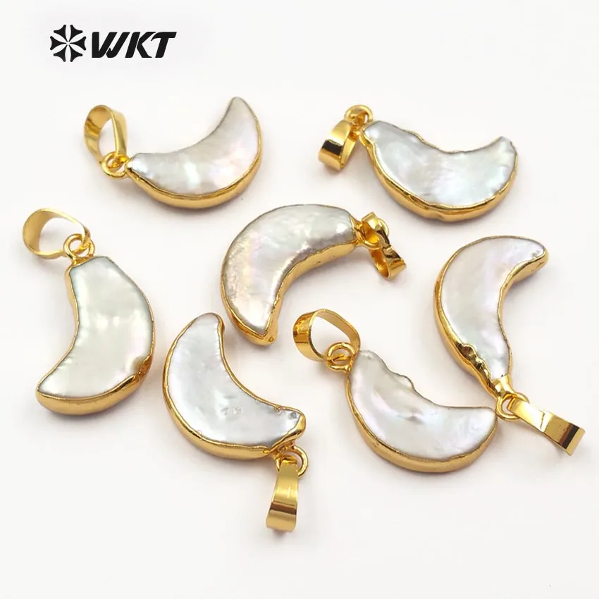 WT JP043 Lucu dan Romantis Liontin Kecil Bentuk Bulan Sabit Mutiara Air Tawar dengan Emas Dicelup Liontin untuk Wanita Perhiasan Membuat|Liontin| - AliExpress
