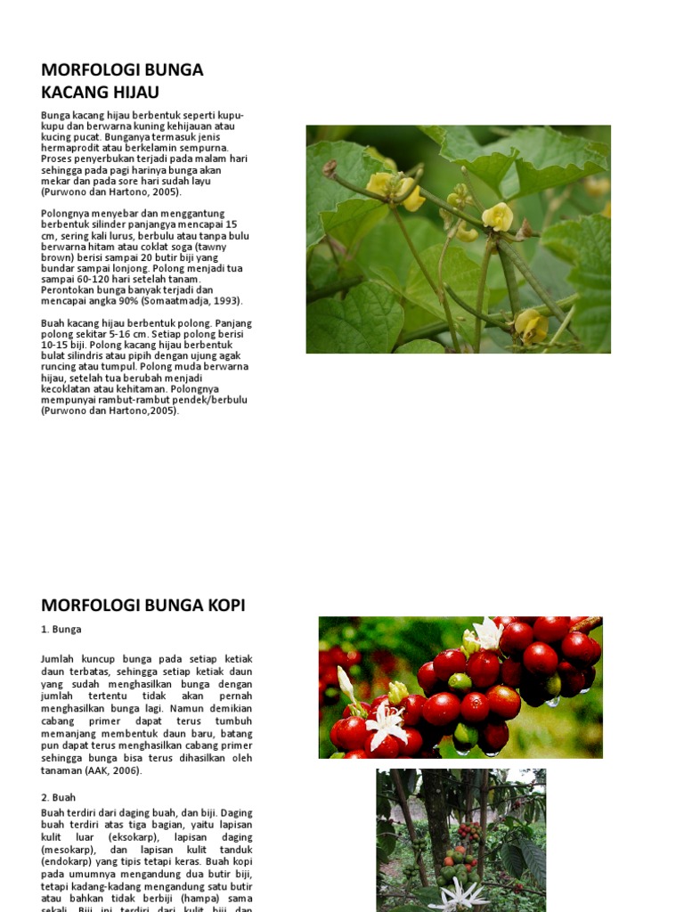 Morfologi Bunga Dan Daun Kacang Hijau Dan Kopi
