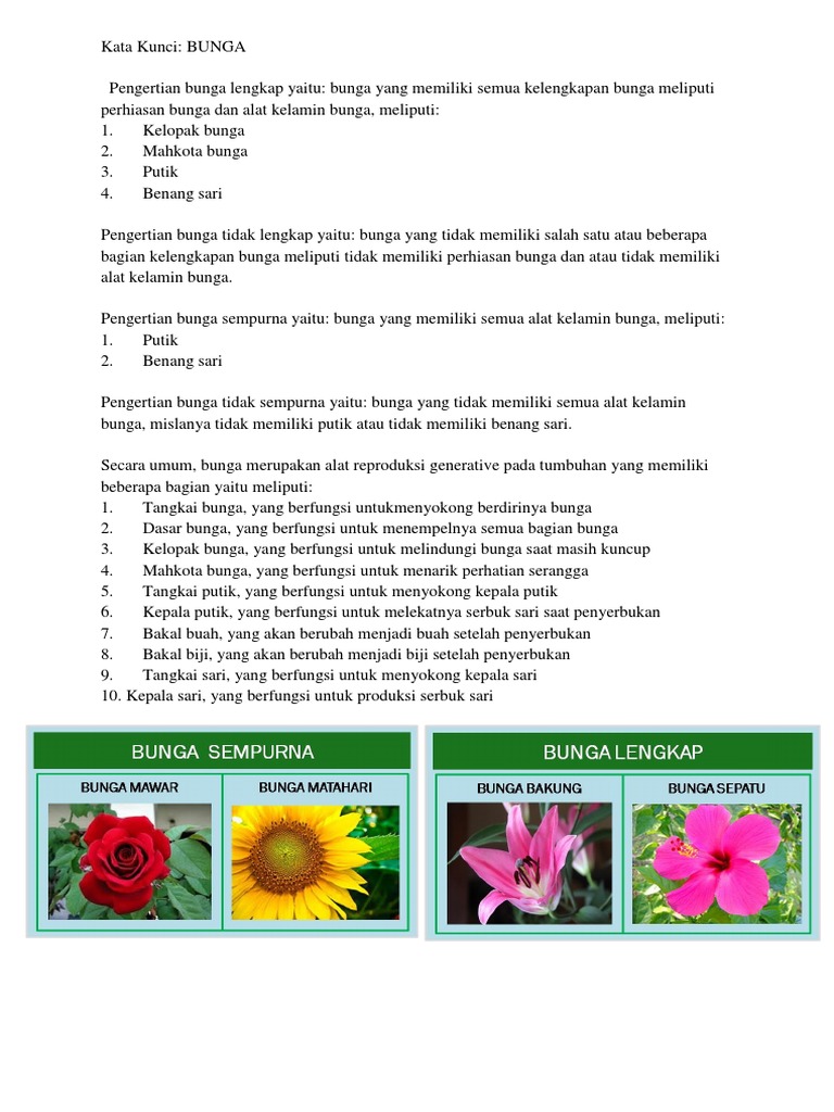 Contoh Lengkap Bunga Sempurna dan Tidak Sempurna