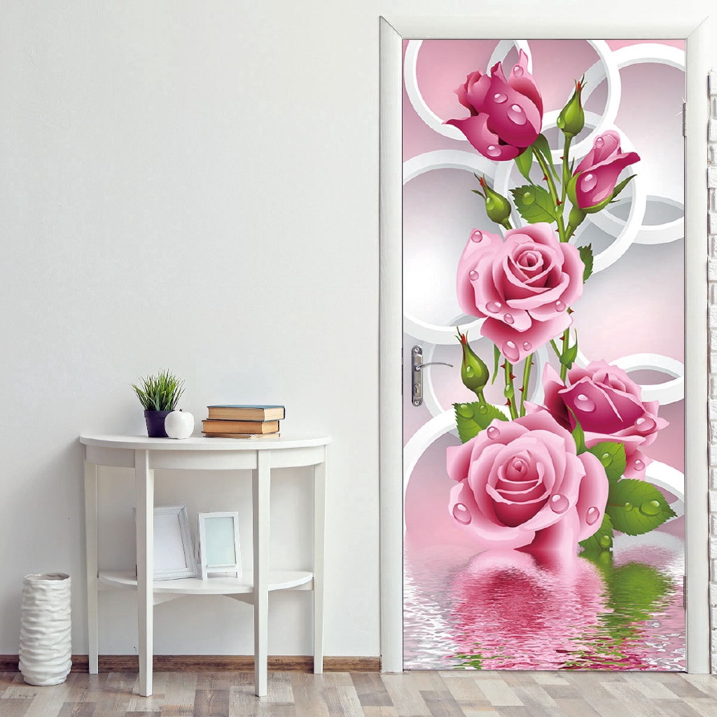 Bunga Mawar 3D Lukisan Rumah Dekorasi Pintu Stiker | Shopee Indonesia
