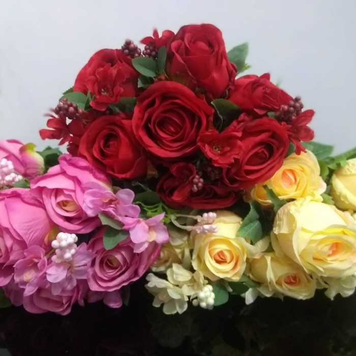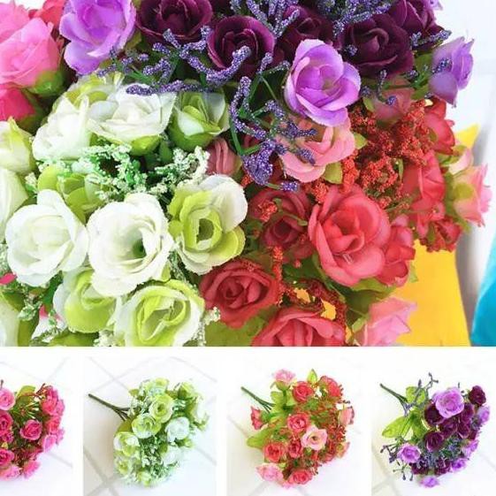 Bagus cantik 1 pcs Buket Bunga Mawar dan Daun Tiruan Dekroasi Pernikahan Rumah tahan lama kuat di Lapak N store | Bukalapak