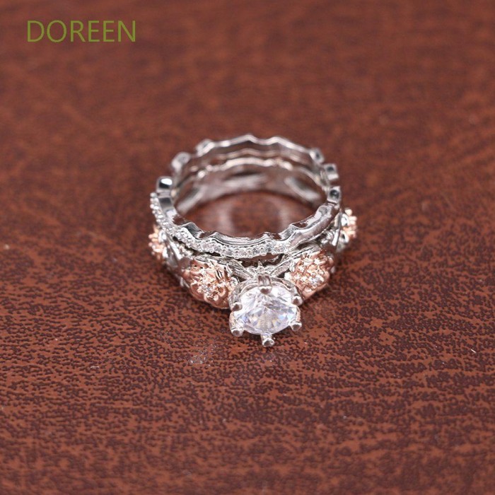 Perak Mode Wanita & Mawar Emas Diajukan Safir Putih Pernikahan Pertunangan Bunga Set Cincin | Lazada Indonesia