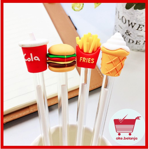 Pulpen Gel Karakter Lucu Burger / Kentang Goreng / Coca Cola / Es Krim Tinta Hitam 0.5mm OK0192 | Shopee Indonesia