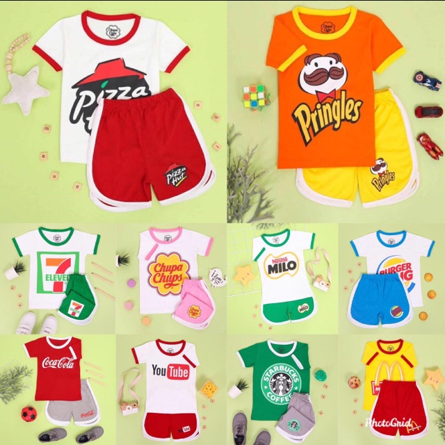 Setelan chupa cups . Setelan anak lucu unik . Setelan gambar pizza hut dan milo anak 10 tahun | Shopee Indonesia