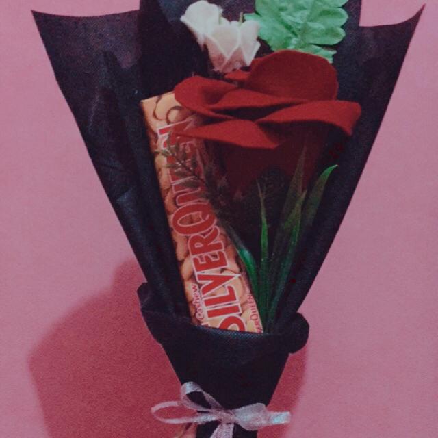 Buket bouquet bucket bunga dan snack coklat silverqueen cantik romantis | Shopee Indonesia
