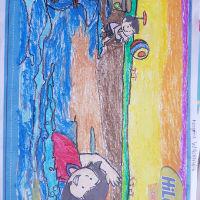 Mewarnai pemandangan dengan crayon