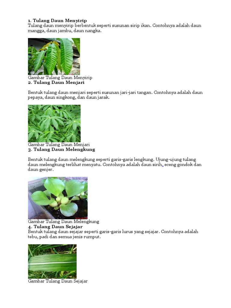 Pengertian dari tulang daun menyirip,menjari,melengkung,dan sejajar. dan sebutkan ciri-ciri dan - Brainly.co.id