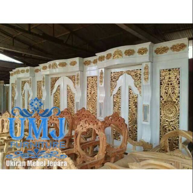 Pernikahan Cikarang Bekasi no Twitter: “Gebyok pelaminan ukir putih minimalis dengan warna putih kombinasi gold terbuat dari kayu jati/mahoni dengan desain klasik, unik, minimalis, dan modern dengan ukiran khas kota Jepara dan