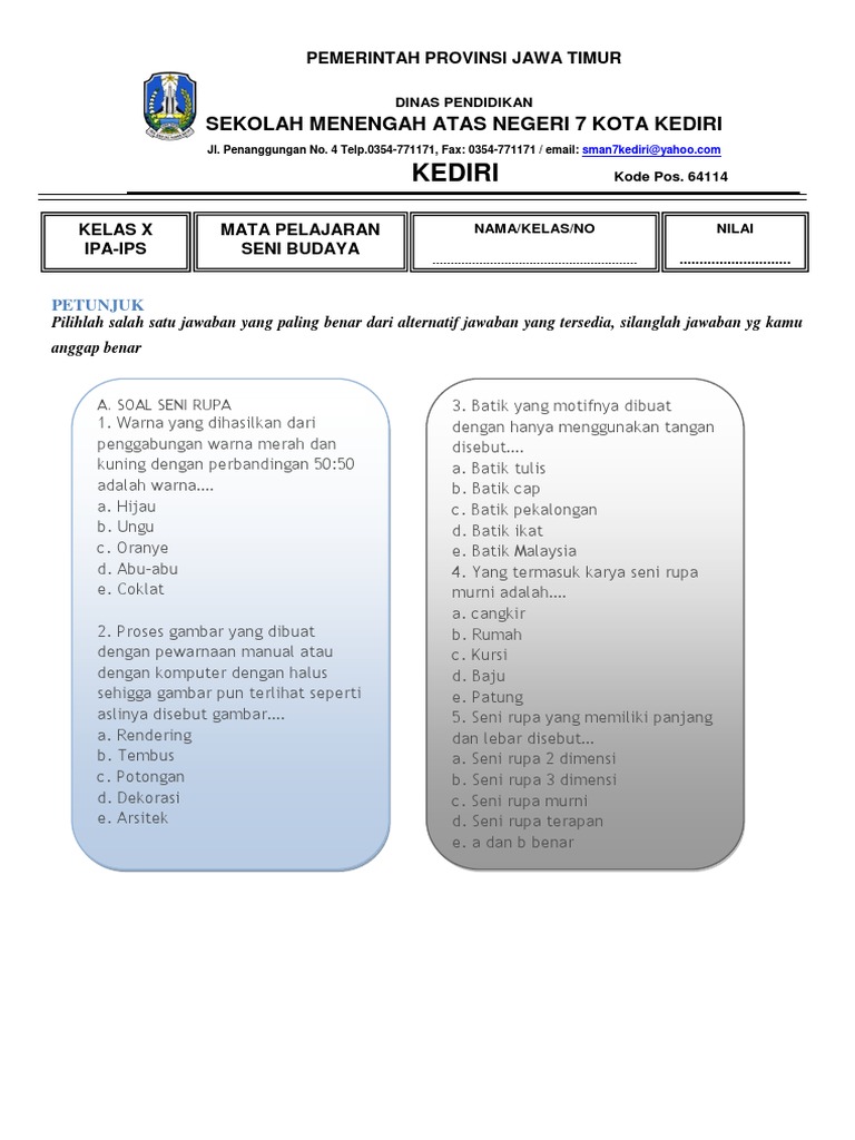 Soal Seni Budaya Kelas 3 Tahun 2020 SD/MI, PG dan Essay