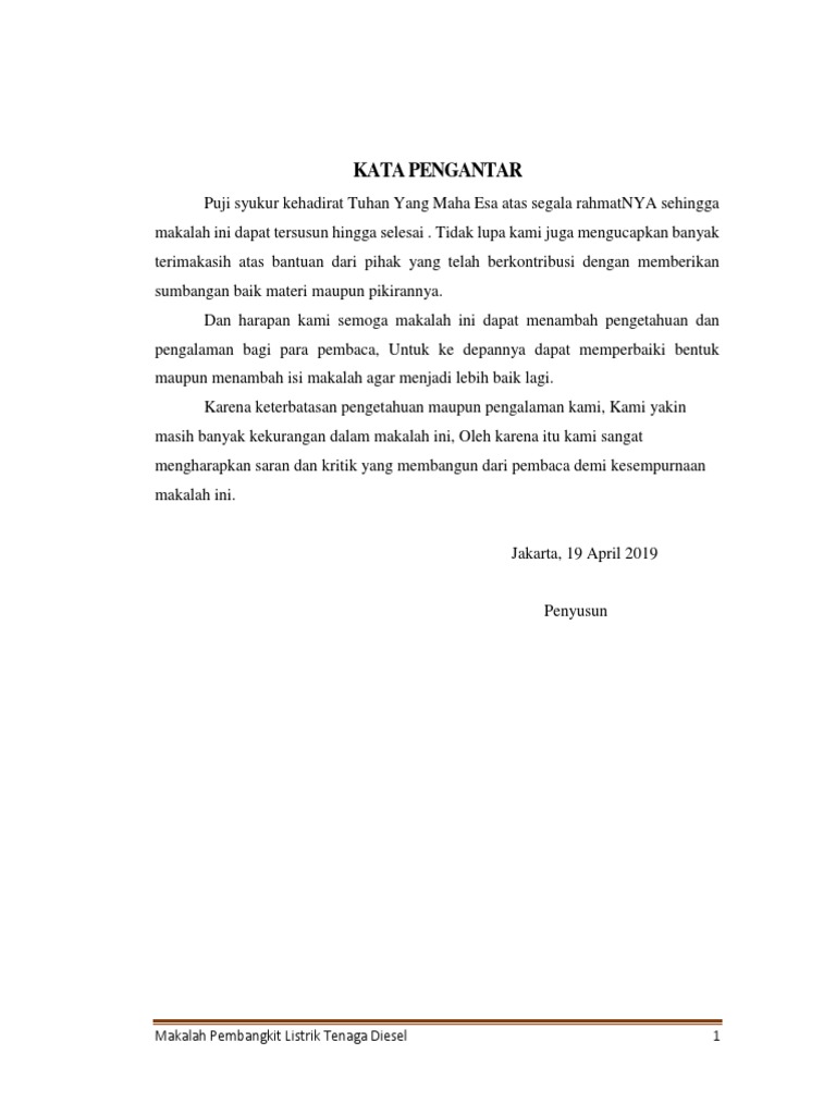 Kata Pengantar: Makalah Pembangkit Listrik Tenaga Diesel 1