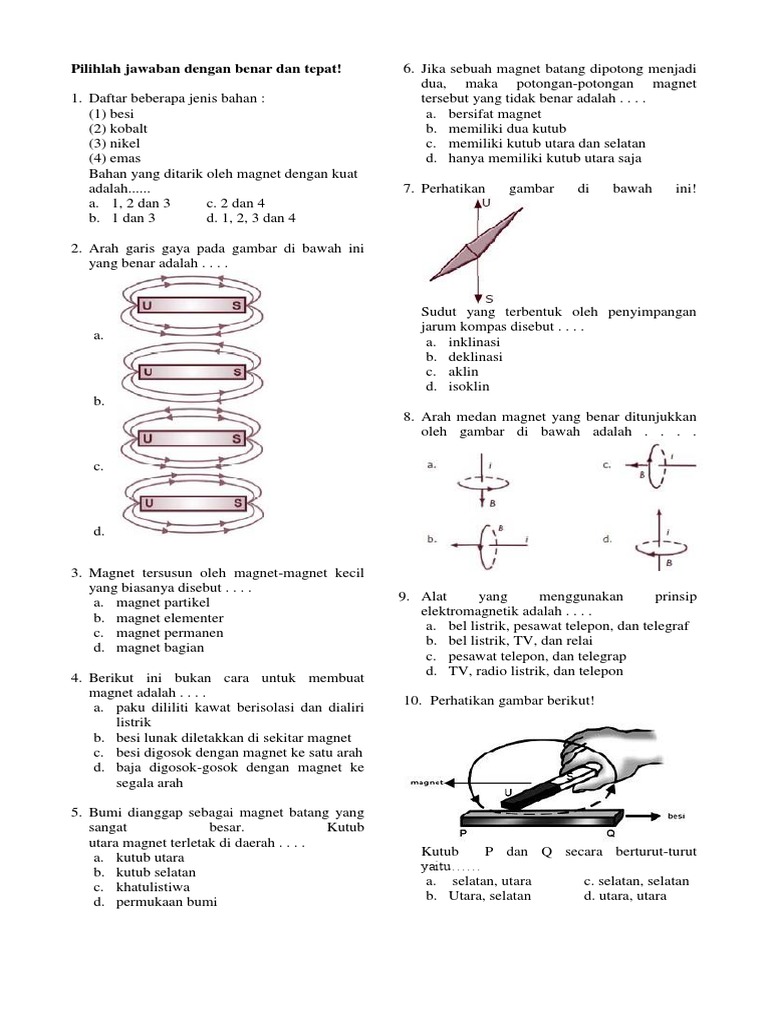 Soal IPA Kemagnetan dan Pemanfaatannya Kelas 9 SMP/MTs Kurikulum 2013