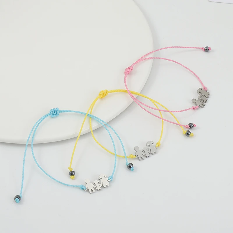 2 Pcs/set Stainless Steel Ibu Ayah Anak anak Gambar Keluarga Gelang Adjustable Colorful Lilin Tali Gelang Perhiasan Buatan Tangan| | - AliExpress