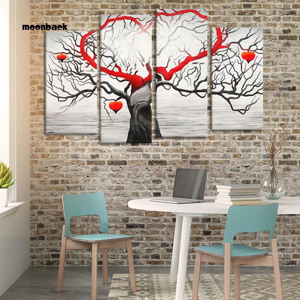 CHA] 4Pcs Lukisan Dinding Gambar Pohon Hati Abstrak Tanpa Bingkai untuk Dekorasi Rumah | Shopee Indonesia