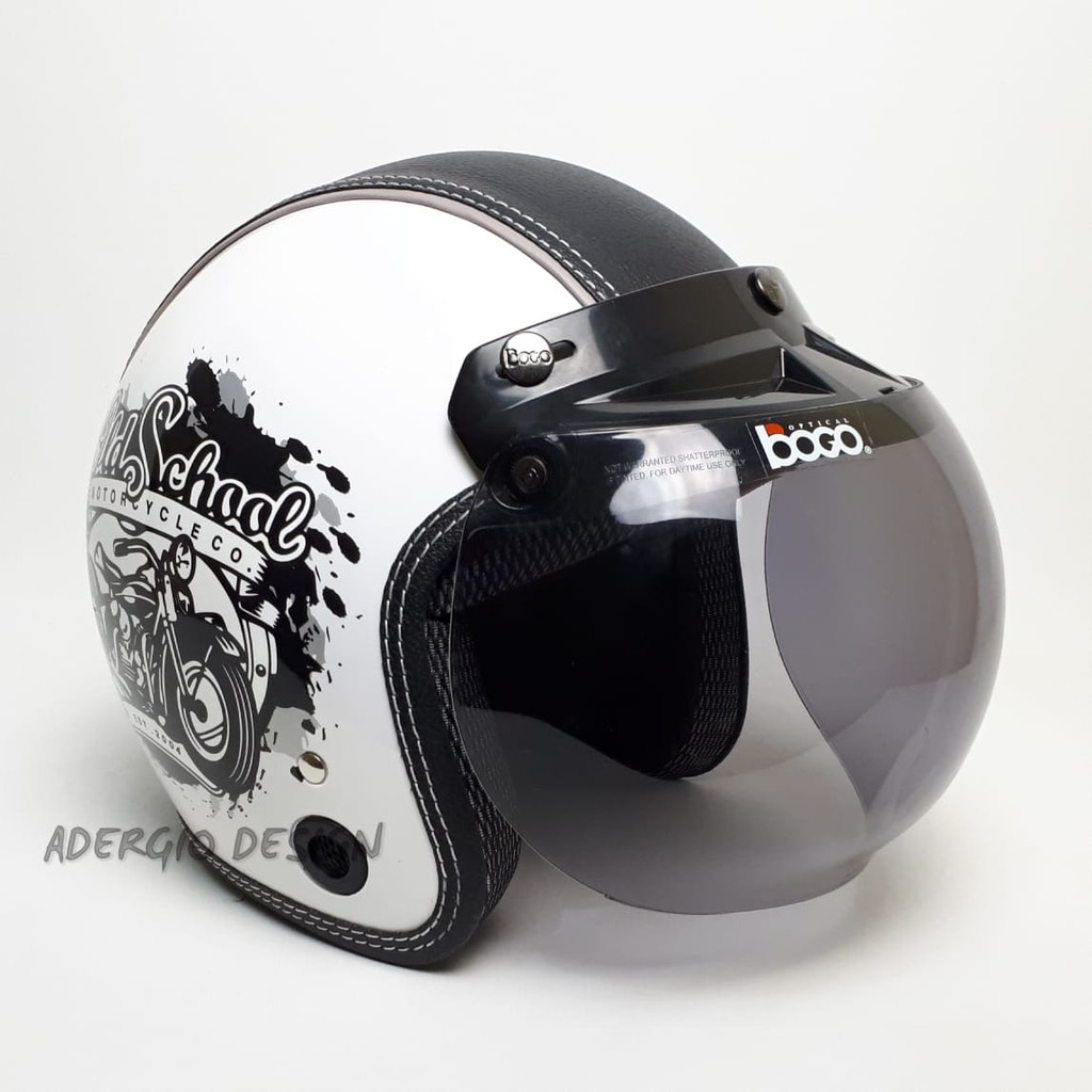 HELM BOGO Motif Old School Putih Glossy LH Semi Kulit Retro Klasik Kaca Bogo dan Osbe | Shopee Indonesia