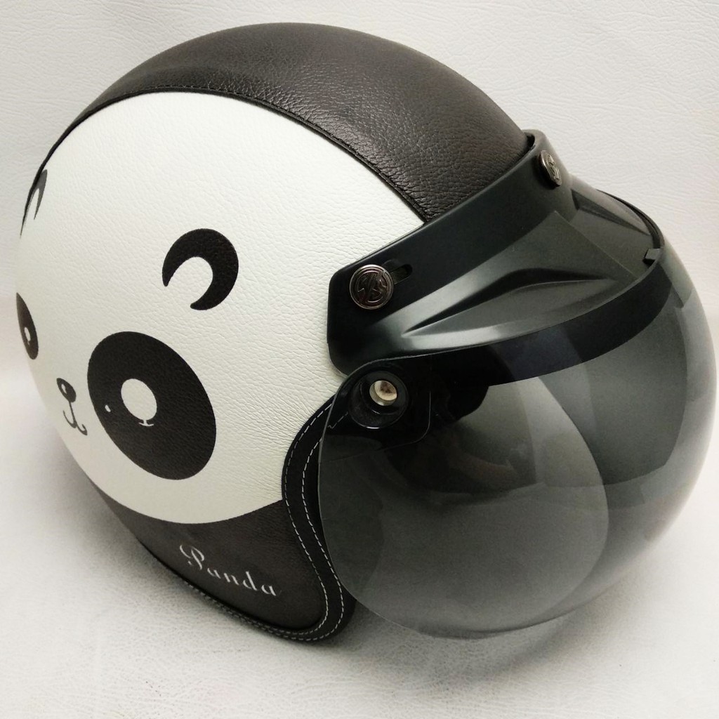 Helm Bogo Retro Kulit dan Glossy Motif Black Panda Klasik Kaca Bubble Halfface | Shopee Indonesia