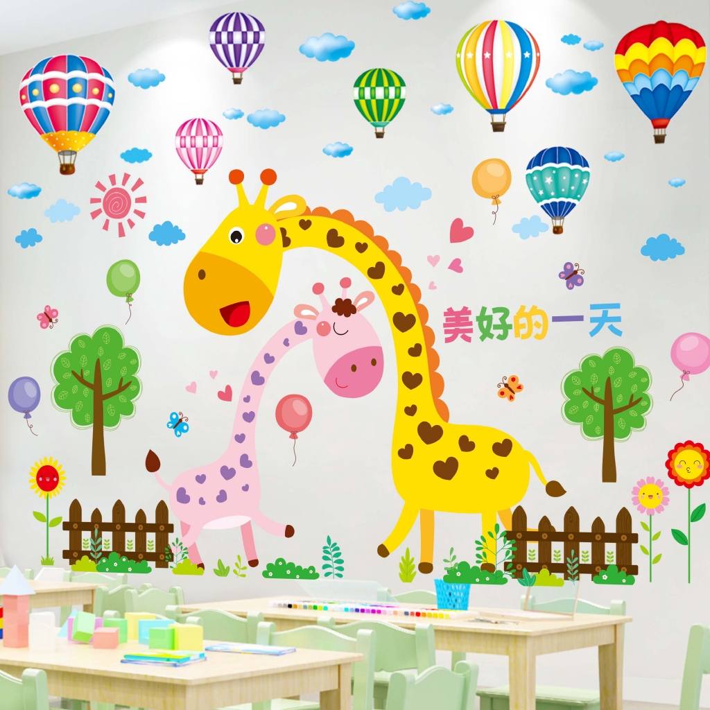 Kartun stiker dinding kamar bayi hewan pendidikan awal stiker hiasan dinding 3D TK stereo anak wallp | Shopee Indonesia