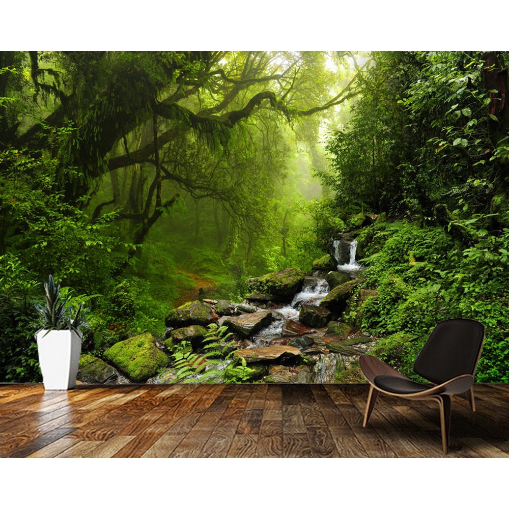 Kustom Ukuran Lukisan Dinding Wallpaper 3D Hijau Hutan Perawan Pemandangan Alam Lukisan Dinding Ruang Tamu Dekorasi Perekat Diri Stiker | Lazada Indonesia