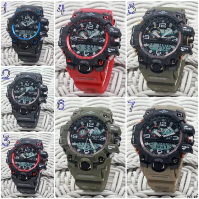 Jam Tangan pria cowok pilot dual time original garansi anti air water resist bisa buat berenang | Shopee Indonesia