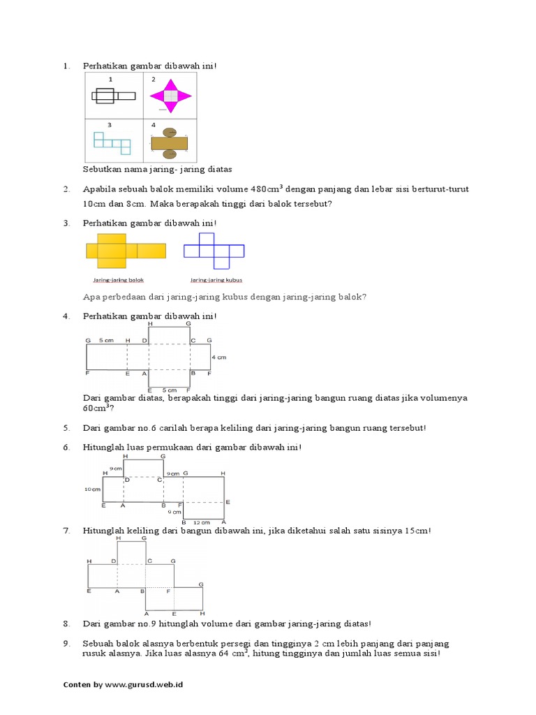 Soal Latihan Jaring Jaring Kubus Dan Balok - Guru Ilmu Sosial