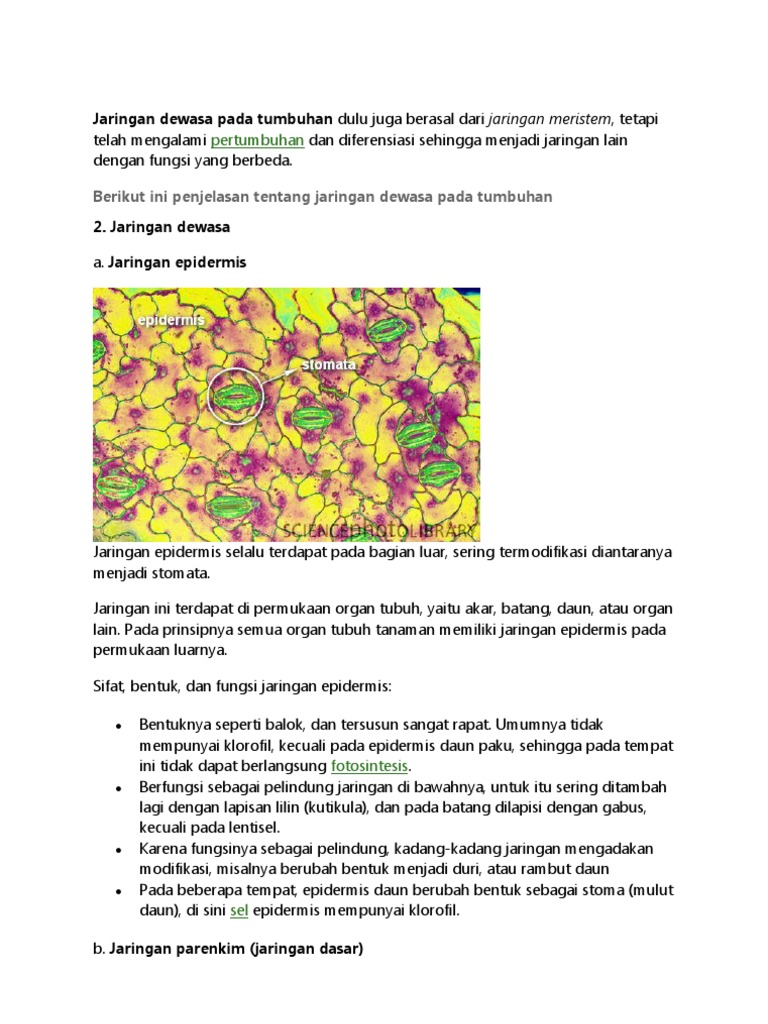 Macam-Macam Jaringan Pada Tumbuhan:Pengertian Jaringan Meristematik (embrional) Dan Jaringan Permanen (Dewasa) Lengkap!!! – Pelajaran Sekolah Online