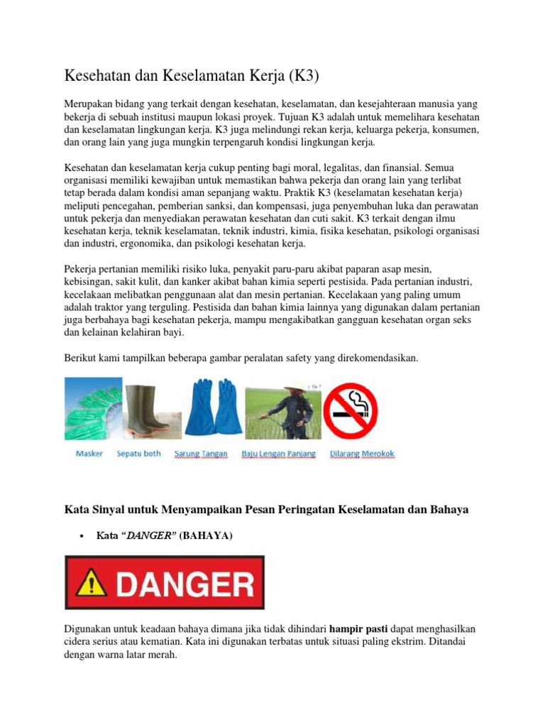 Kesehatan dan Keselamatan Kerja (K3): Kata Sinyal untuk Menyampaikan Pesan Peringatan Keselamatan dan Bahaya