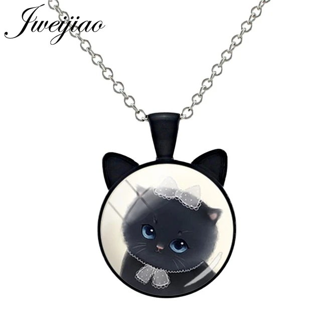 Jweijiao Abstrak Kucing Siluet Gambar Kalung Kucing Telinga Warna Perak Rantai Panjang Kaca Gems Cabochon Liontin Perhiasan C698 25|Liontin Kalung| - AliExpress