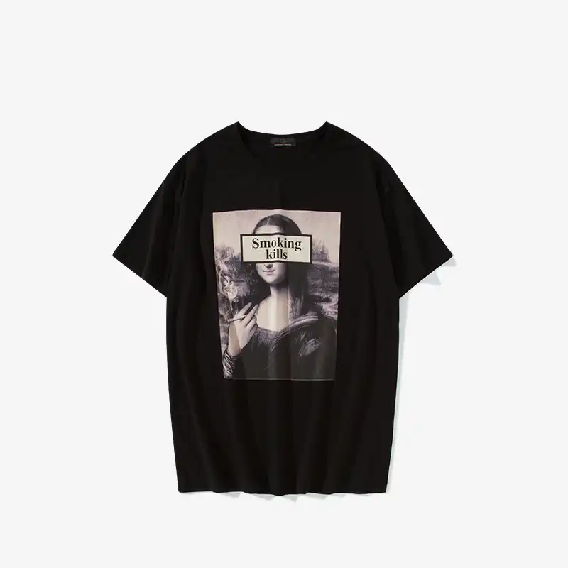 Merokok Keterampilan Mona Lisa Smile Cetak Kaos Lucu Kombinasi Pola Terkenal Gambar Parodi Tee Shirts High Street Combed GR| | - AliExpress