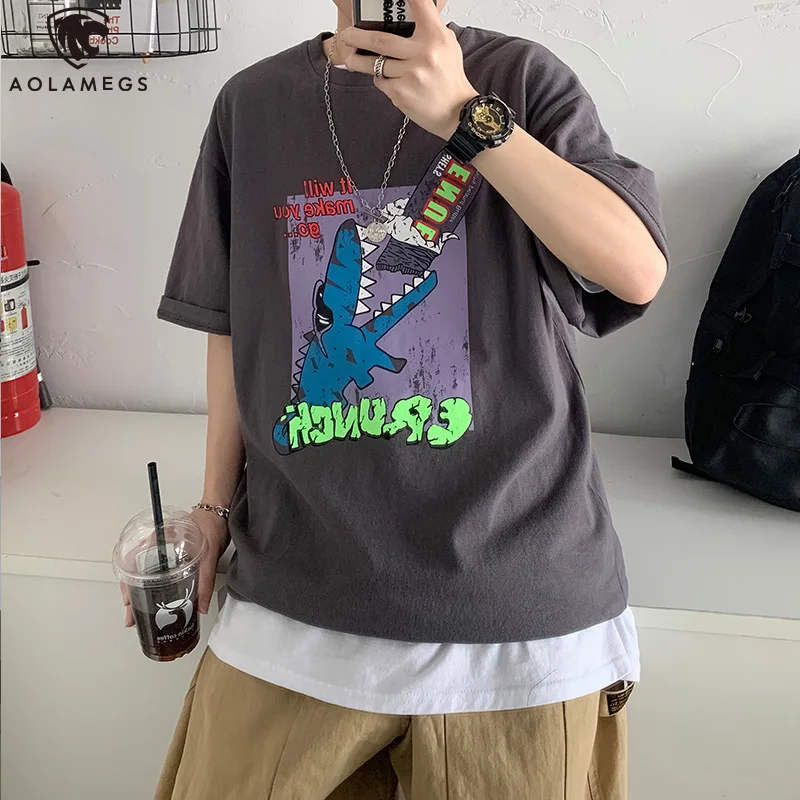 Aolamegs T Shirt Pria Lucu Gambar Printing Longgar Tops Tees Kasual Hip Hop Pria Kaos Pasangan Lengan Pendek Streetwear Musim Panas|T-shirt| - AliExpress