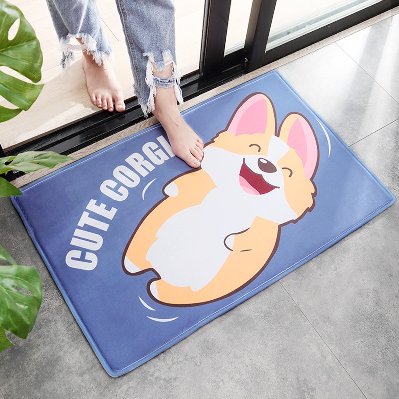Karpet Alas Lantai Dengan Bahan Flannel Tebal Non-Slip Dan Gambar Kartun Corgi | Shopee Indonesia