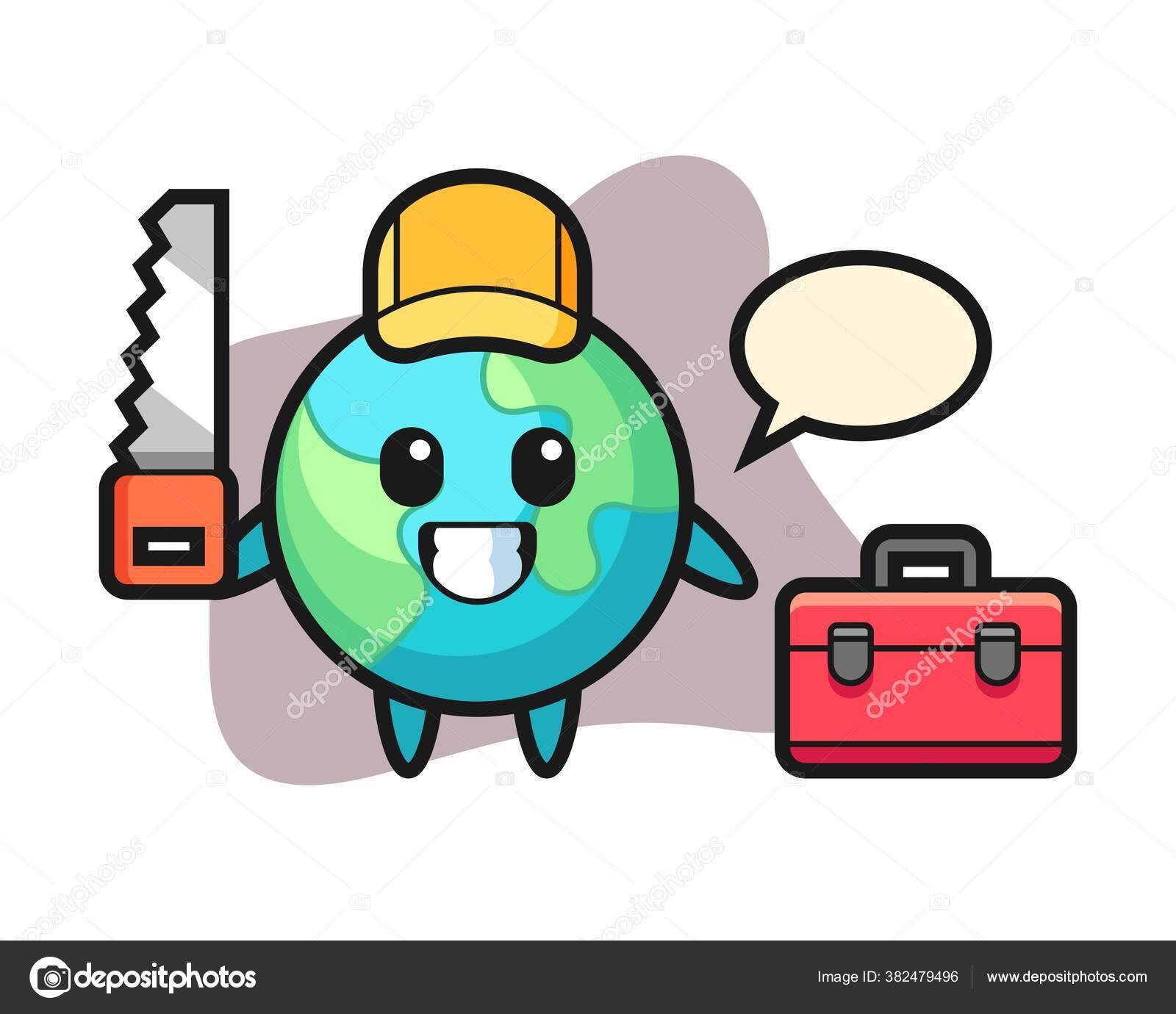 Kartun Bumi Sebagai Tukang Kayu — Stok Vektor © heriyusuf.rap@gmail.com #382479496