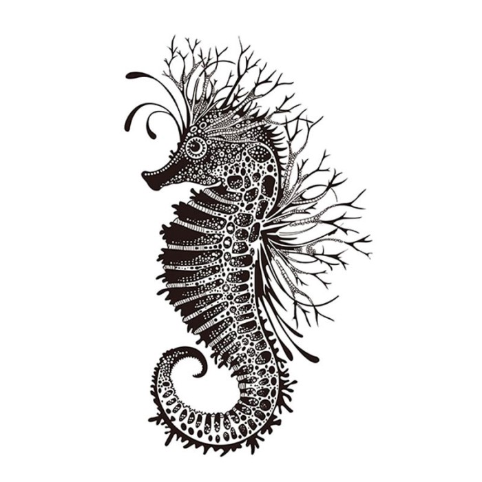 Bagaimana Menggambar Seekor Kuda Laut Dengan Ink Liner Hitam dan Abu-Abu