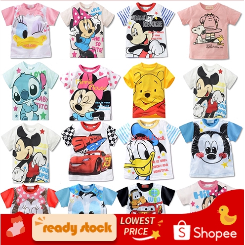 Kaos T-Shirt Unisex Lengan Pendek Gambar Kartun Mickey Minnie Mouse + Donald Duck | Shopee Indonesia
